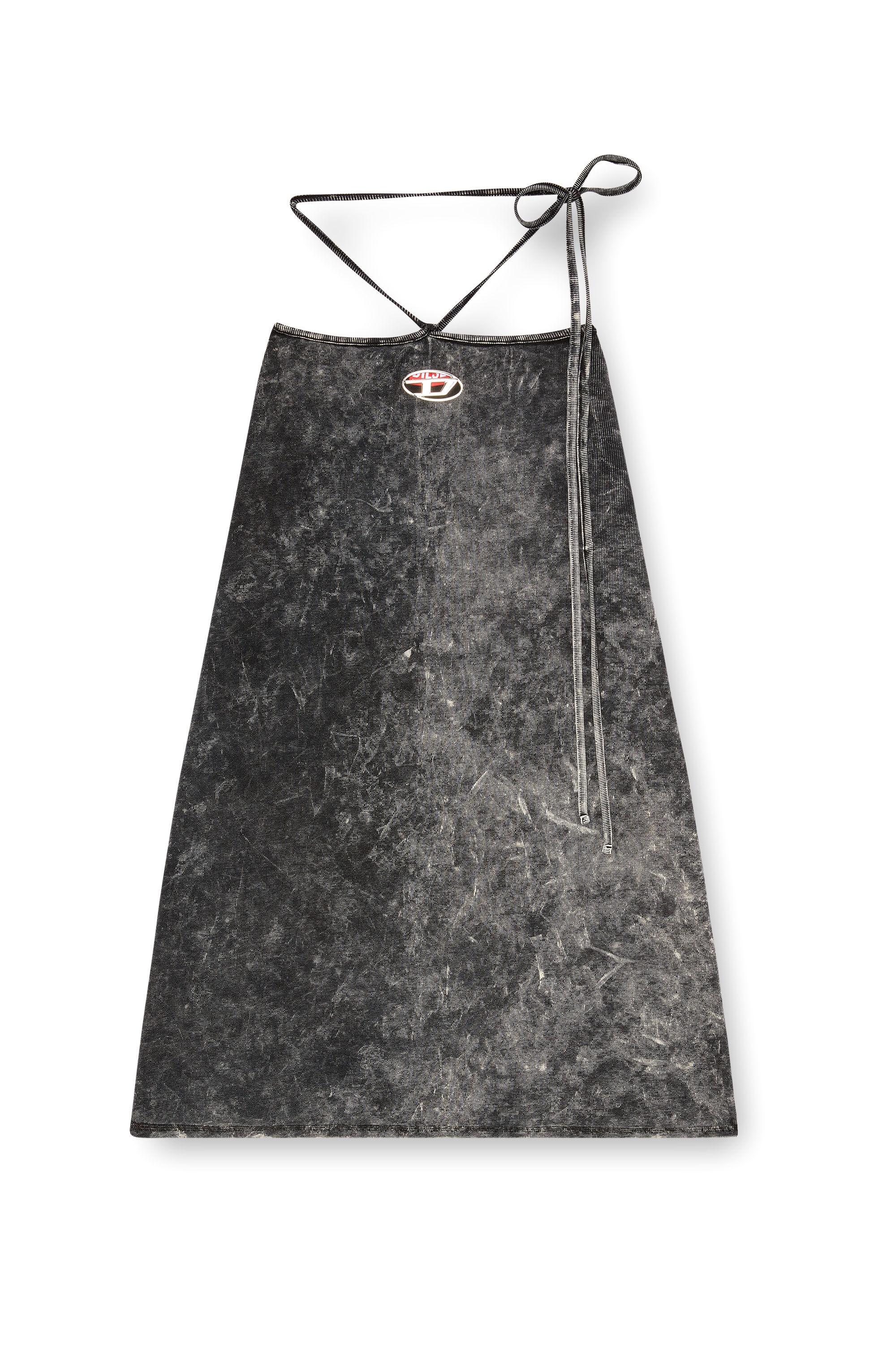 Product Description This women's midi dress has a flowy A-line silhouette and long ties that wind around the waist to frame the stomach. It's made from marbled ribbed fabric using organic cotton and stretch and finished with a cut-out metal Oval D embellishment. ID: A144220KHAS Size & Fit Model is wearing a size S and is 175 cm / 5'7'' Check the size chart to choose the correct size. Materials & Details Composition: 94%Cotton 6%Elastane-Spandex Slim fit Long wrap-around waist ties