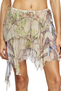 Product Description This crinkled TENCEL™ muslin skirt hangs in asymmetrical layers with raw-cut edges for a tattered look. The all-over print is an artistic collab, mixing medieval scenes with heraldic designs. Finished with a toggle stopper at the waist. ID: A183760WFCE Size & Fit Model is wearing an IT size 40 and is 175 cm / 5'7'' Check the size chart to choose the correct size. Materials & Details Composition: 100%Viscose-Rayon Regular fit Toggle-drawstring waistAsymmetrical hem