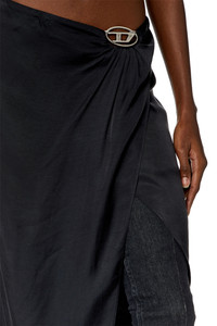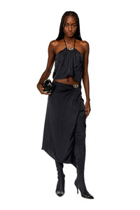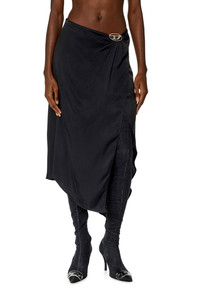Product Description This women’s grey skirt is made from smooth satin, using a blend of recycled cupro and TENCEL™ Modal fibres. It has a regular fit and an asymmetric midi hem. The side slit and Oval D hardware gathering the waist create the illusion of a wrap silhouette. ID: A122610JNAC Size & Fit Model is tall 176 cm / 5'9", the waist measures 60 cm / 23" Check the size chart to choose the correct size. Materials & Details Composition: 58%Cupro 42%Modal Regular fit Side slit Asymmetric hem Invisible zip closure