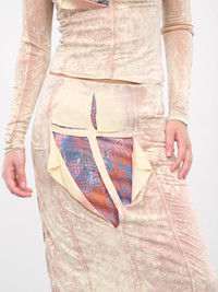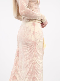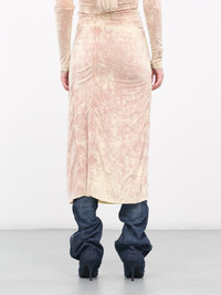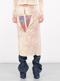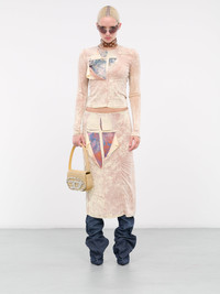 DIESEL pink skirt, layered skirt design, stretch rayon construction, acid wash effect, mid-rise, waist cut-outs & graphic underlays, scalloped hem, lined, midi-length, slim fit. Made in Bulgaria Outer: 92% Viscose 8% Elastane Inner: 92% Polyester 8% Elastane Standard Sizing Model is 5'9" wearing size XS. Bust: 32" Waist: 24" Hips: 34"