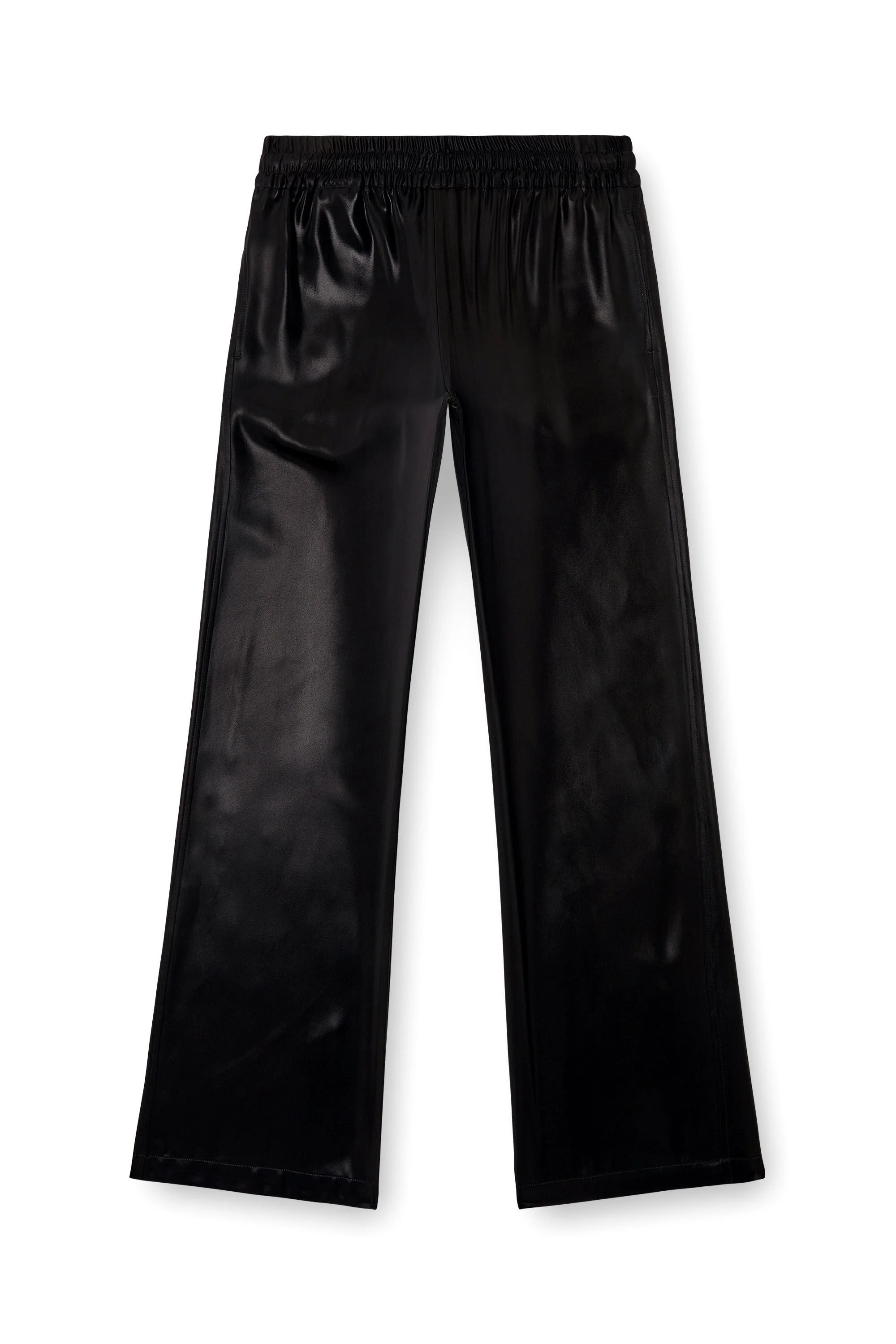 Product Description Contemporary women's track pants with a glam edge. The fluid cut of the fabric enhances its satin like finish while the elasticated waist and side pockets add a sporty twist. The look is uptown urban, with a tonal cotton drawstring waist and metallic Oval D applied above the right back pocket. ID: A173960QJAR Size & Fit Model is wearing an IT size 40 and is 175 cm / 5'7'' Check the size chart to choose the correct size. Materials & Details Composition: 100%Polyester Loose fit Elasticated waistband