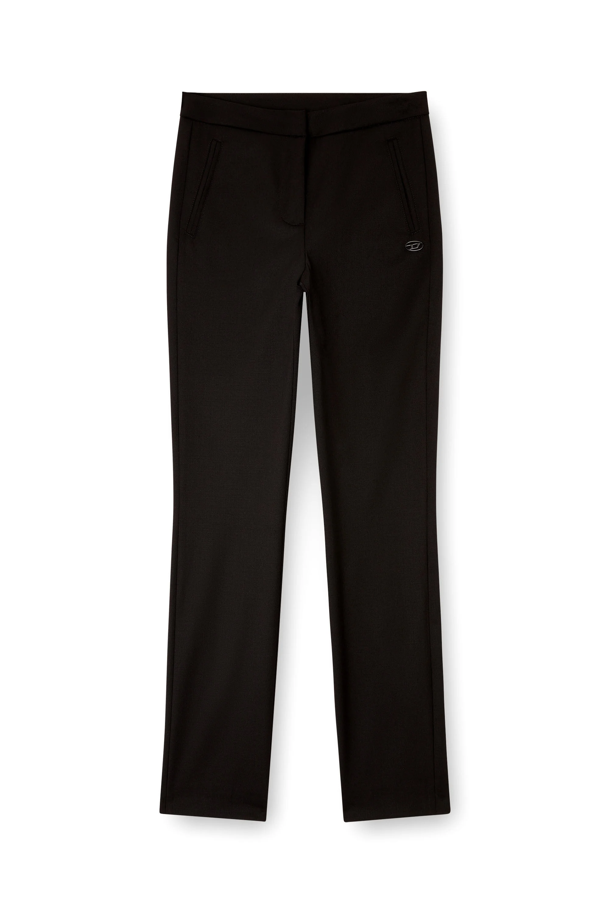 Product Description High-waisted tapered pants featuring a front closure with a hidden zip and metal hook. Made from stretch wool, they offer optimal comfort. They have front welt pockets and Oval D metal details under the left pocket. ID: A196280PHAL Size & Fit Model is wearing an IT size 40 and is 175 cm / 5'7'' Check the size chart to choose the correct size. Materials & Details Composition: 53%Polyester 43%Wool 4%Elastane-Spandex High waist Welt pockets Metal hook closure Zip fly Oval D plaque
