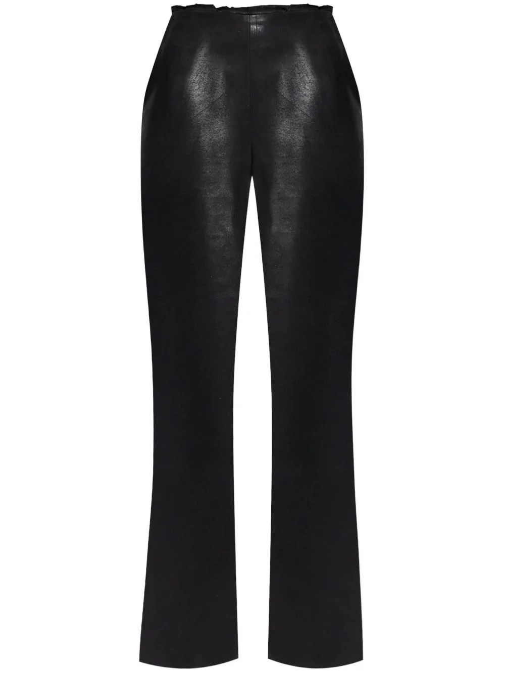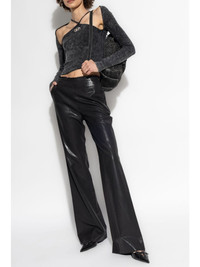 P-Lumys trousers Highlights - Black - Coated finish - Frayed edge - Mid-rise - Two side slit pockets - Dart detailing - Flared hem Made in Italy Composition Polyester 55%, Wool 45%