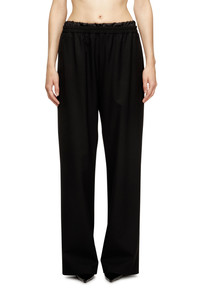 Product Description Wide pants with regular fit. The lower part of the pants is made of wool, while the adjustable insert at the waist is nylon with an elastic drawstring and D-rings. They feature elegant welt pockets on the front and the Oval D logo in metal above the right back pocket. ID: A197940GIBX Size & Fit Model is wearing an IT size 40 and is 175 cm / 5'7'' Check the size chart to choose the correct size. Materials & Details Composition: 53%Polyester 43%Virgin Wool 4%Elastane-Spandex, Contrast 100%Polyamide-Nylon Regular fit Adjustable waist with drawstring Back pocket with Oval D plaque Front slit pockets