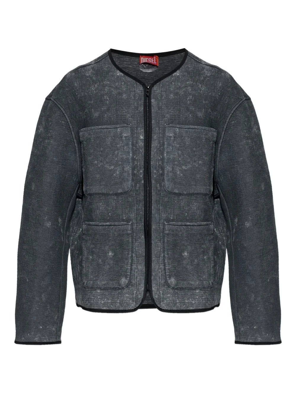 pocket-patch jacket Highlights - Grey - Front zip-fastening - Round neck - Long sleeves - Front pockets Imported Composition Cotton 82%, Polyester 18% Washing instructions Read Manufacturer Guidelines