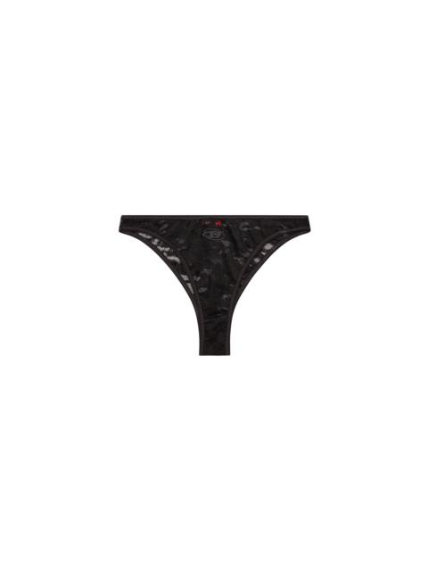Product Description These women's sheer briefs are cut from stretchy jacquard lace with a utilitarian camouflage motif. A tonal Oval D logo is embroidered on the front. ID: A177510DRAK Size & Fit Model is wearing a size S and is 175 cm / 5'7'' Check the size chart to choose the correct size. Materials & Details Composition: 86%Polyamide-Nylon 14%Elastane-Spandex, Elastic 80%Polyamide-Nylon 20%Elastane-Spandex, Gusset 100%Cotton