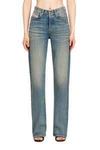 Product Description Regular fit with a straight leg. The waistband sits high on the waist and is designed to create a V-shaped front, tracing a feminine yet comfortable silhouette that embodies classic elegance. Fastened with a button fly. Made from comfort denim, this versatile wash is part of Diesel's DNA selection. It's made using a percentage of recycled cotton, and showcases distinctive whiskering and worn effects in a medium blue hue. ID: A1986909N32 Size & Fit Model is wearing a size 26 and is 175 cm / 5'7'' Check the size chart to choose the correct size. Materials & Details Composition: 99%Cotton 1%Elastane-Spandex Fit: Regular Waist: High Wash: Medium treated Fabric: Comfort Closure: Button fly
