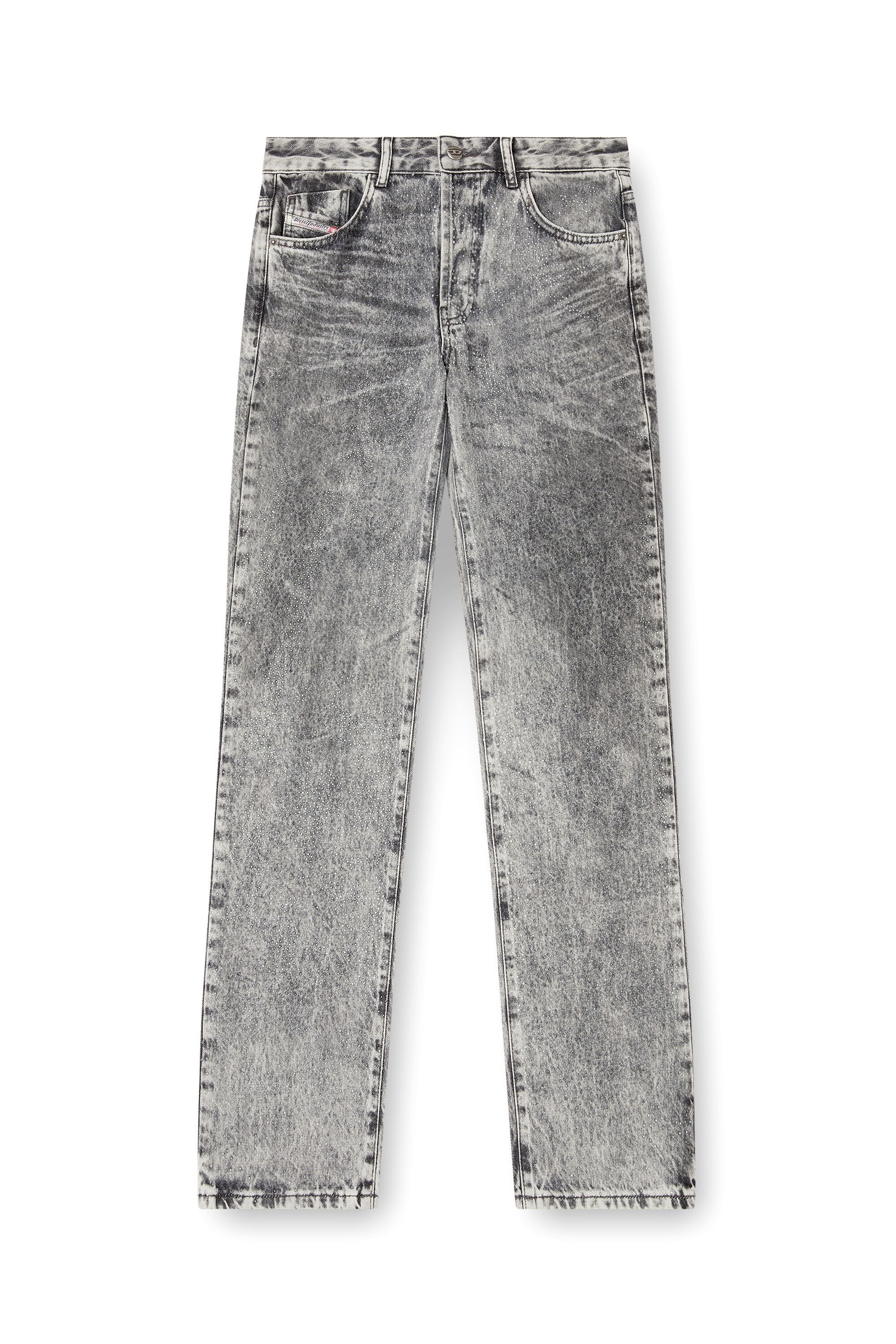 Product Description Regular fit with a low, shaped waist and straight leg. Fastened with a button fly, this contemporary silhouette is easy to wear. Made from fix denim, this light grey wash is treated with whiskers where the fabric naturally folds with wear, then artfully decorated with a shower of micro-crystals that highlight the silhouette. ID: A168550ABCS Size & Fit Model is wearing a size 26 and is 175 cm / 5'7'' Check the size chart to choose the correct size. Materials & Details Composition: 100%Cotton Fit: Regular Waist: Low Wash: Treated Fabric: Non-Stretch Closure: Button fly