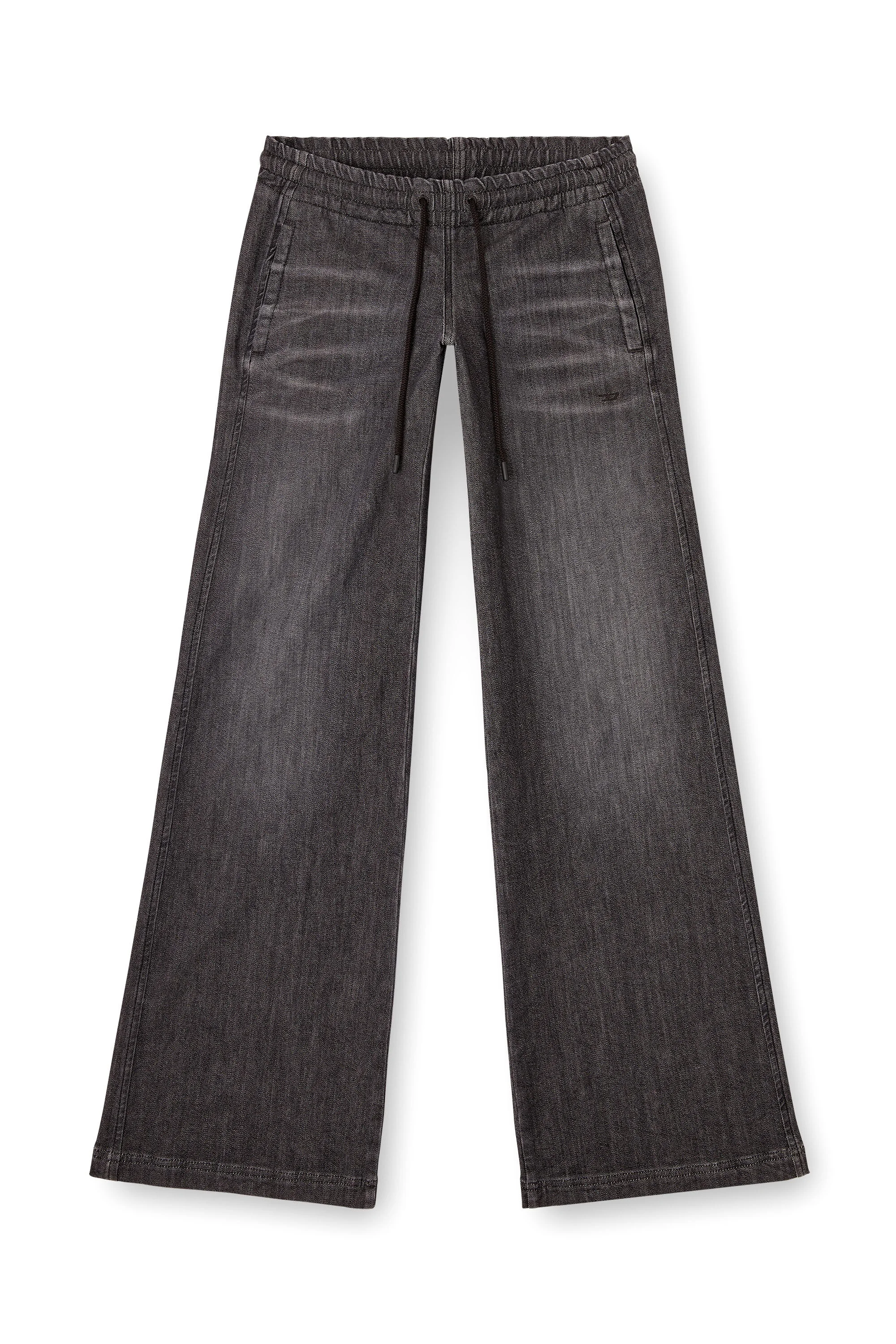 Product Description Relaxed fit with a low elasticated waist and long wide leg. The clean black wash with subtle whiskers is part of Diesel's DNA selection of iconic, essential pieces. ID: A1658609M66 Size & Fit Model is wearing a size 26 and is 175 cm / 5'7'' Check the size chart to choose the correct size. Materials & Details Composition: 97%Cotton 3%Elastane-Spandex Fit: Relaxed Waist: Low Wash: Clean Fabric: JoggJeans Closure: Elastic waistband Crotch: Regular