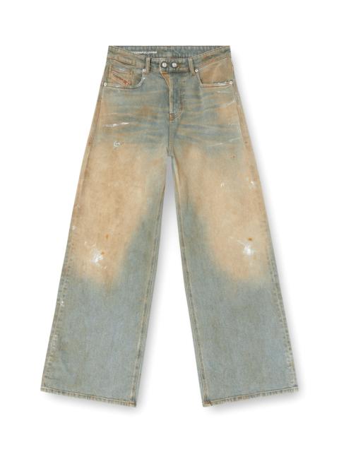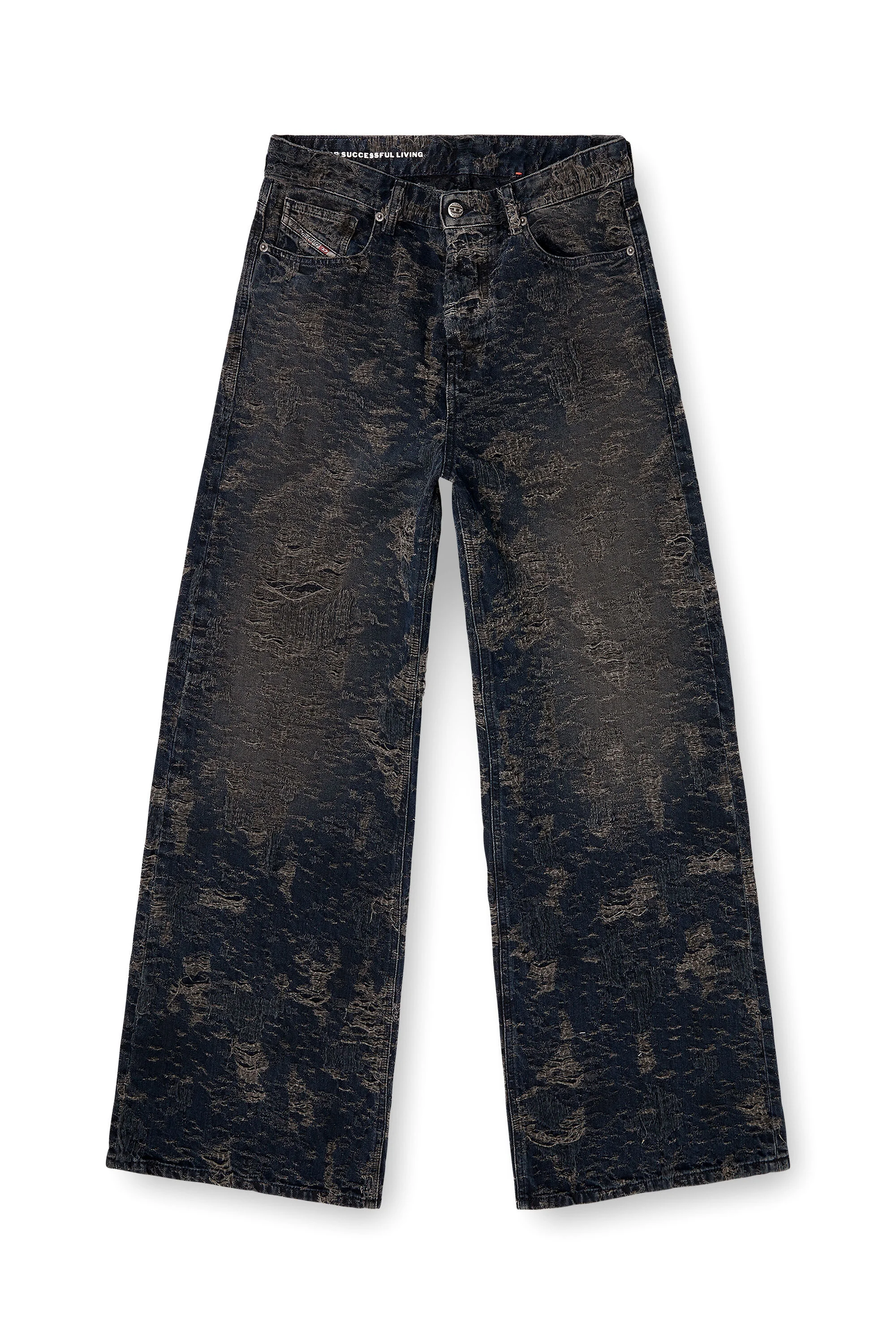 Product Description Relaxed fit with a low waist and low crotch, and extra-long wide leg. The loosest of our denim silhouettes, cut to make a drapey, oversized statement. Button fly. Crafted using organic cotton, this statement wash in shades of blue, black and grey channels Diesel's raw and experimental DNA. The jacquard-weave fabric is woven with floating threads for a raw, broken look that's totally intentional. ID: A06925007BV Size & Fit Model is wearing a size 26 and is 175 cm / 5'7'' Check the size chart to choose the correct size. Materials & Details Composition: 100%Cotton Fit: Relaxed Waist: Low Wash: Treated Fabric: Non-Stretch Closure: Button fly Crotch: Low