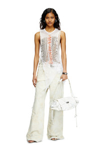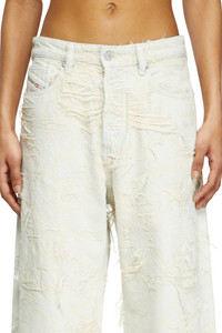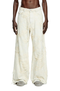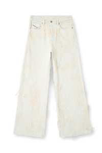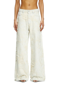 Product Description Relaxed fit with a low waist and low crotch, and extra-long wide leg. The loosest of our denim silhouettes, cut to make a drapey, oversized statement. Button fly. This white Spring Summer 2025 Runway wash is crafted from fix denim using 100% organic cotton. The double loom jacquard weave replicates Diesel's signature distressed and destroyed aesthetic through an interplay of warp and weft threads. The fabric is then stonewashed and lasered to create random floating threads. Each piece has a unique design: the rips and distressing are artfully positioned to complement each style. ID: A1918309M40 Size & Fit Model is wearing a size 26 and is 175 cm / 5'7'' Check the size chart to choose the correct size. Materials & Details Composition: 100%Cotton Fit: Relaxed Waist: Low Wash: Treated Fabric: Non-Stretch Closure: Button fly