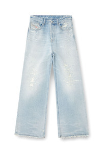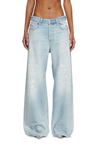 Product Description Relaxed fit with a low waist and low crotch, and extra-long wide leg. The loosest of our denim silhouettes, cut to make a drapey, oversized statement. Button fly. Distressed in Italy, this light blue wash taps Diesel's signature destroyed aesthetic. Crafted from organic-cotton fix denim, the wash is defined by ripped and repaired abrasions on the pockets, hips and legs. ID: A0692509M53 Size & Fit Model is wearing a size 26 and is 175 cm / 5'7'' Check the size chart to choose the correct size. Materials & Details Composition: 100%Cotton Fit: Relaxed Waist: Low Wash: Destroyed Fabric: Non-Stretch Closure: Button fly Crotch: Low