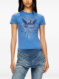 rhinestone-embellished raglan-sleeve T-shirt Highlights - Blue - Phoenix and skulls graphic - Rhinestones embellishments - Raglan sleeves - Round neck Imported Composition Cotton 95%, Elastane 5% Washing instructions Read Manufacturer Guidelines