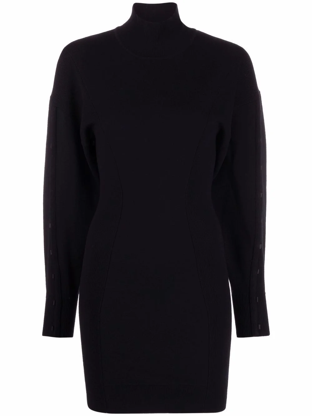 roll-neck knit dress Black wool roll-neck knit dress from DIESEL featuring ribbed detailing, roll neck, long sleeves and short length. Imported Composition Wool 71%, Nylon 16%, Polyester 11%, Spandex/Elastane 2% SIZE & FIT Model measurements Height 5 ft 11 in(1.8 m) Bust/Chest 31.49 in(80 cm) Hips 35.82 in(91 cm) Waist 24.8 in(63 cm) FittingInformation This piece fits true to size. We recommend you get your regular size Cut for a slim fit Made with a mid-weight stretch fabric Washing instructions Hand Wash