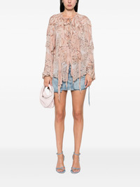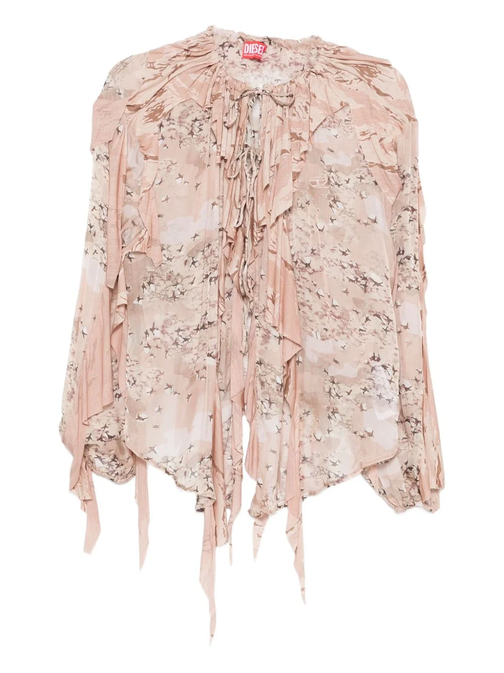 ruffled printed blouse Highlights - Light brown - Ruffled detailing - Print design - Tie fastening - Long sleeves Imported Composition Lyocell 100%, Rayon 100% SIZE & FIT Model measurements Height 5 ft 10 in(1.78 m) Bust/Chest 33.46 in(85 cm) Hips 36.22 in(92 cm) Waist 23.22 in(59 cm) Washing instructions Hand Wash