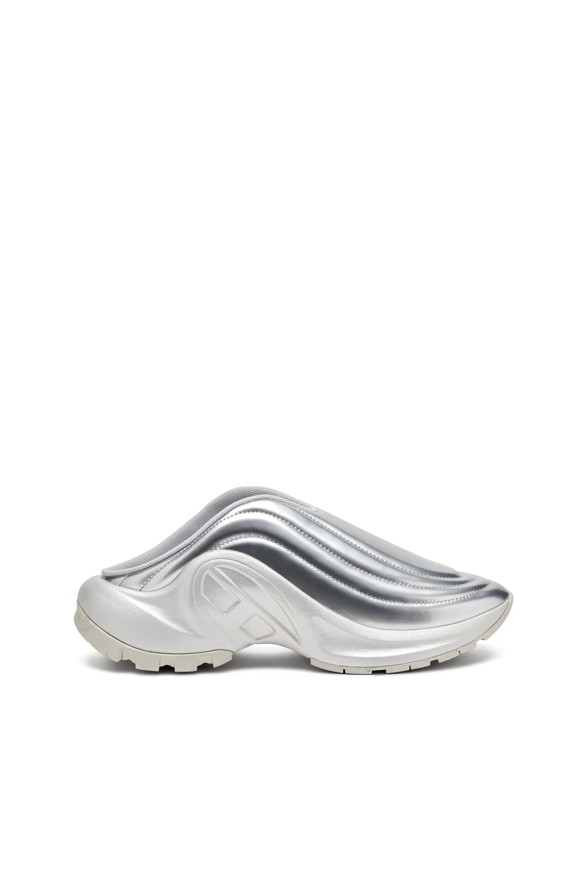 Product Description A mule iteration of the S-D-RUNNER-X sneaker, these genderless shoes combine a sculptural silhouette with a futuristic shine of metallic silver. The curve of the soft, slip-on upper is echoed in the meticulous stitching, complemented by an exaggerated sole that’s embossed with a folded-effect Oval D logo. ID: Y03548P1660 Materials & Details Composition: 100%Polyurethane Slip-on Gripped rubber outsole Unisex