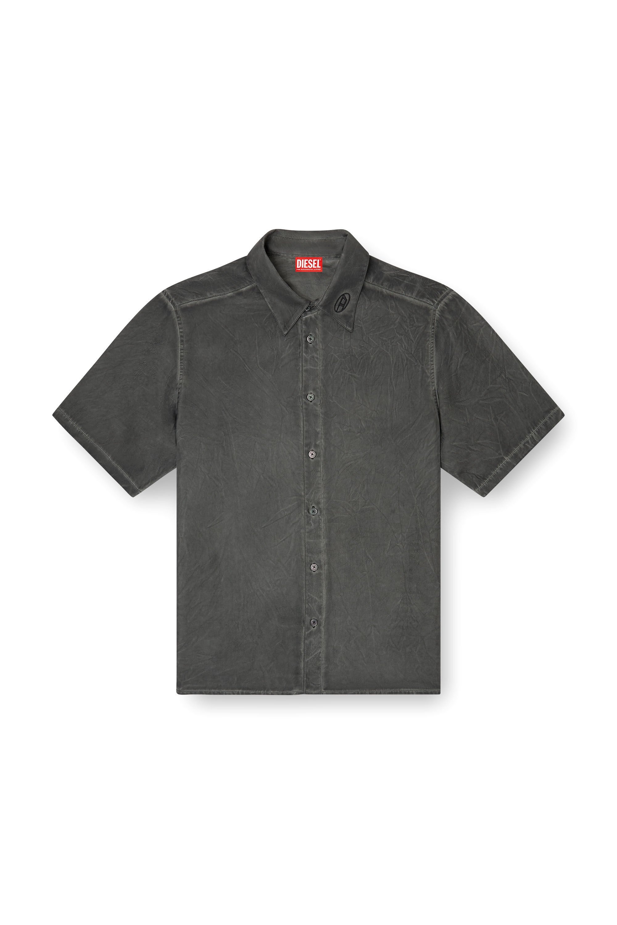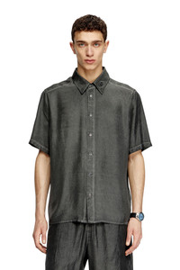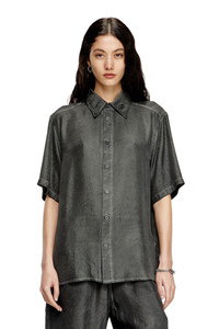Product Description A genderless design, this short-sleeve shirt is defined by its glossy, wrinkled texture and subtle Oval D logo embroidered on the collar. It's cut from fluid acetate twill and features a regular fit. ID: A172840CMBB Size & Fit Model is wearing an IT size 48 and is 188 cm / 6'2" Check the size chart to choose the correct size. Materials & Details Composition: 100%Acetate Regular fit Button closure Unisex