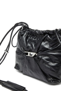 Product Description A brand new shape, this women's bucket bag is crafted from shiny leather that's artfully crushed around the iconic metal D logo, lending the accessory a modern twist. The drawstrings and strap, inspired by sportswear, are elevated with sleek metal accents. Compact yet functional thanks to multiple internal pockets. ID: X10325P1003 Materials & Details Composition: 100%Cow Leather Detachable and adjustable shoulder strap Zip closure Inside: zip pocket and flat pocket