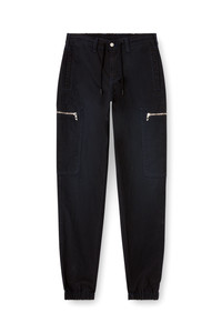 Product Description Slim fit with a medium drawstring waist and tapered leg. Informed by jogging pants, this style is crafted from JoggJeans for the utmost comfort, and detailed with a branded zip on the side patch pocket. Zip closure. The black canvas-weave fabric combines a technical attitude with a lightweight feel. The crisp texture is similar to sailcloth, while the wash process creates a clean, lightly worn-in denim effect. Made with 50% regenerative cotton. ID: A18215068SJ Size & Fit Model is wearing a size L and is 188 cm / 6'2". Model is wearing a size S and is 177 cm / 5'9". Materials & Details Composition: 65%Cotton 32%Polyester 3%Elastane-Spandex Fit: Slim Waist: Mid Wash: Clean Fabric: JoggJeans Closure: Zip fly Crotch: Regular