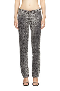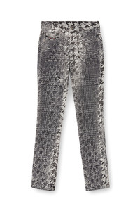 Product Description Distressed in Italy, this black fix denim features a distinctive jacquard weave with a double pattern: the houndstooth top layer is burned using a precise laser process to reveal the Prince of Wales motif underneath. Stonewashed with enzymes, this unique worn-in wash is part of the Runway line up, channelling an unconventional haute-couture attitude. ID: A213760CEBN Size & Fit Model is wearing a size 26 and is 175 cm / 5'7'' Check the size chart to choose the correct size. Materials & Details Composition: 100%Cotton Fit: Slim Waist: Low Wash: Treated Fabric: Non-Stretch Closure: Button fly Crotch: Regular