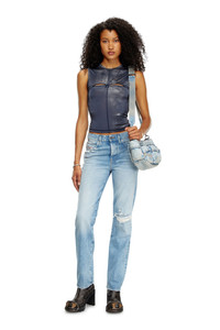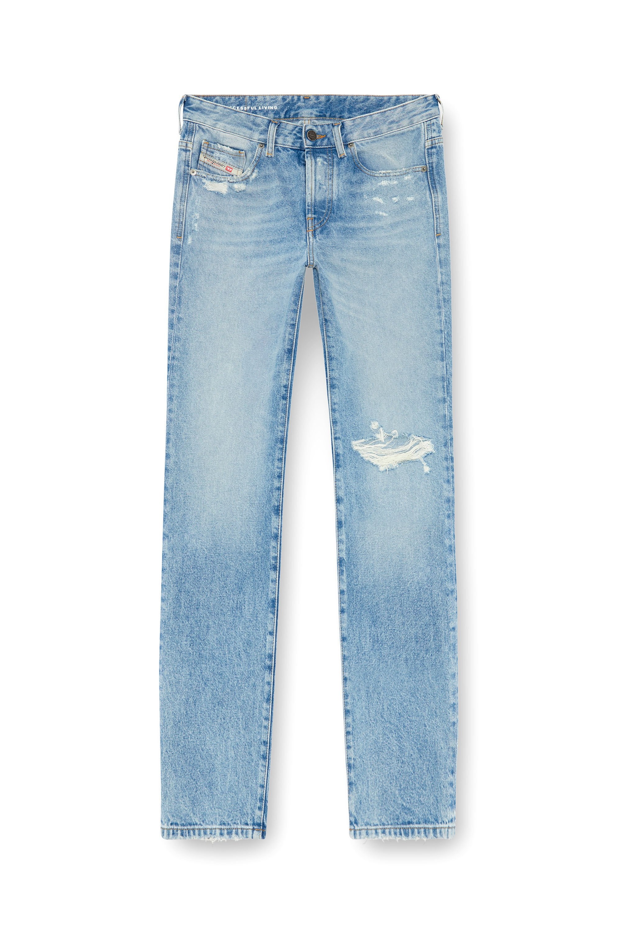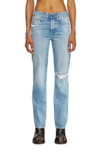 Product Description Slim style with a regular, shaped waist and straight leg. This contemporary silhouette is easy to wear and channels an authentic attitude. Finished with a jacron back patch and an embroidered D. Fastened with a button fly. This organic-cotton fix denim interprets Diesel's signature destroyed aesthetic through ripped and repaired details. The light blue wash is enriched with abrasions on the upper part of the jean – a signature trait of Diesel denim – and a slash on the knee with a tonal denim patch underneath. ID: A1233709J80 Size & Fit Model is tall 177 cm / 5'10'', the waist measures 60 cm / 23" Check the size chart to choose the correct size. Materials & Details Composition: 100%Cotton Fit: Slim Waist: Mid Leg: Straight Closure: Button fly