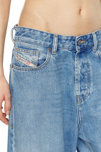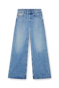 Product Description Relaxed style with a low waist, low crotch, and extra-long wide leg that showcases a '90s street attitude. Button closure. Crafted using partially recycled cotton, this fix denim fabric features a light blue wash with a clean finish. ID: A0692509I29 Size & Fit Model is tall 178 cm / 5' 10", the waist measures 63 cm / 25'' Fits true to size, take your normal size. Materials & Details Composition: 100%Cotton By buying cotton products from Diesel, you’re supporting responsible cotton production through "Better Cotton”. Fit: Loose Waist: Low Leg: Straight Wash: Clean Fabric: Non-Stretch Color: Light blue Closure: Button fly