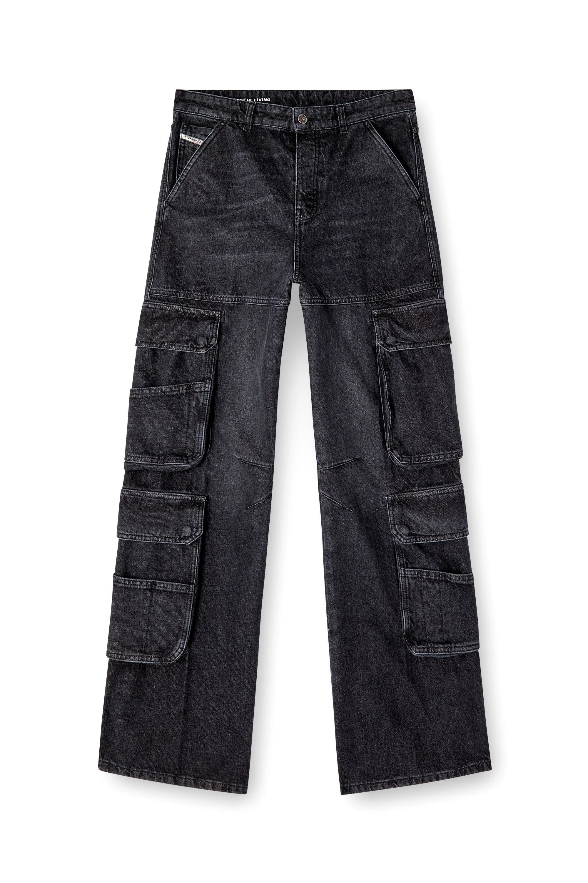 Product Description Loose style with a low waist and wide leg that channels the relaxed attitude of '90s jeans. Four large cargo pockets amp up the volume. Crafted from fix denim in a dark blue wash with whiskers and a subtle vintage look. ID: A118710HLAA Size & Fit Model is wearing a size 26 and is 175 cm / 5'7'' Check the size chart to choose the correct size. Materials & Details Composition: 100%Cotton Fit: Loose Waist: Low Leg: Straight Wash: Medium treated Fabric: Non-Stretch Color: Black/Dark grey Closure: Button fly