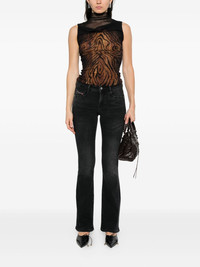 logo-tag jeans Highlights - Black - Five-pocket styling - Button fly - Belt loops - Bootcut leg Imported Composition Cotton 92%, Elastomultiester 6%, Elastane 2% SIZE & FIT Model measurements Height 5 ft 9 in(1.75 m) Bust/Chest 32.67 in(83 cm) Hips 36.22 in(92 cm) Waist 24.8 in(63 cm) FittingInformation Designed with a bootcut leg, these jeans allow for a close fit at the waist and with an unrestricted, comfortable fit and additional room at the calves Constructed from stretch denim, this piece offers a stretch fit with durability Washing instructions Machine Wash