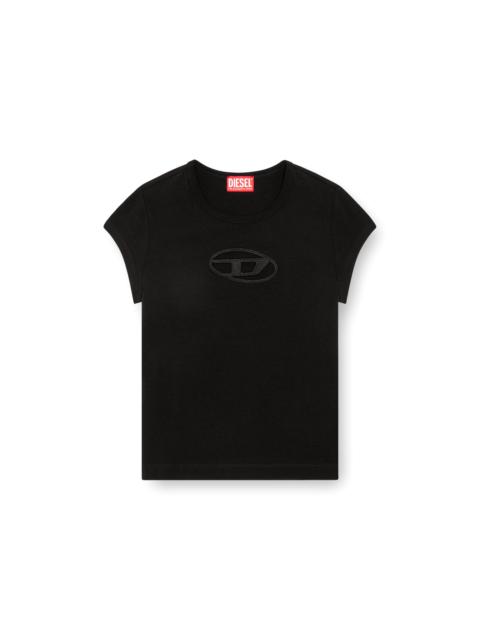 Product Description This women's top features a peekaboo 'oval D' logo on the chest, made using a laser-cutting technique and embroidery. It's crafted from organic cotton blended with stretch for a comfortable slim fit. The red variant of this item is a limited edition. ID: A062680AFAA Size & Fit Model is wearing a size S and is 175 cm / 5'7'' Fit runs large. We recommend sizing down Materials & Details Composition: 93%Cotton 7%Elastane-Spandex, Rib 97%Cotton 3%Elastane-Spandex, Embroidery Yarn 100%Polyester Red color: limited edition Slim fit