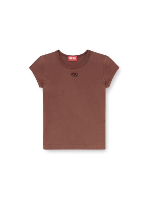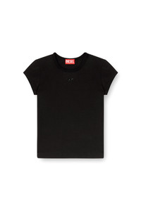 Product Description Women’s close-fitting top in a clean, essential cut, crafted from organic cotton with added stretch. A laser-cut and embroidered Oval D logo decorates the front, revealing a glimpse of skin or the layer below. ID: A199120AFAA Size & Fit Model is wearing a size S and is 175 cm / 5'7'' Check the size chart to choose the correct size. Materials & Details Composition: 93%Cotton 7%Elastane-Spandex, Rib 97%Cotton 3%Elastane-Spandex Slim fit