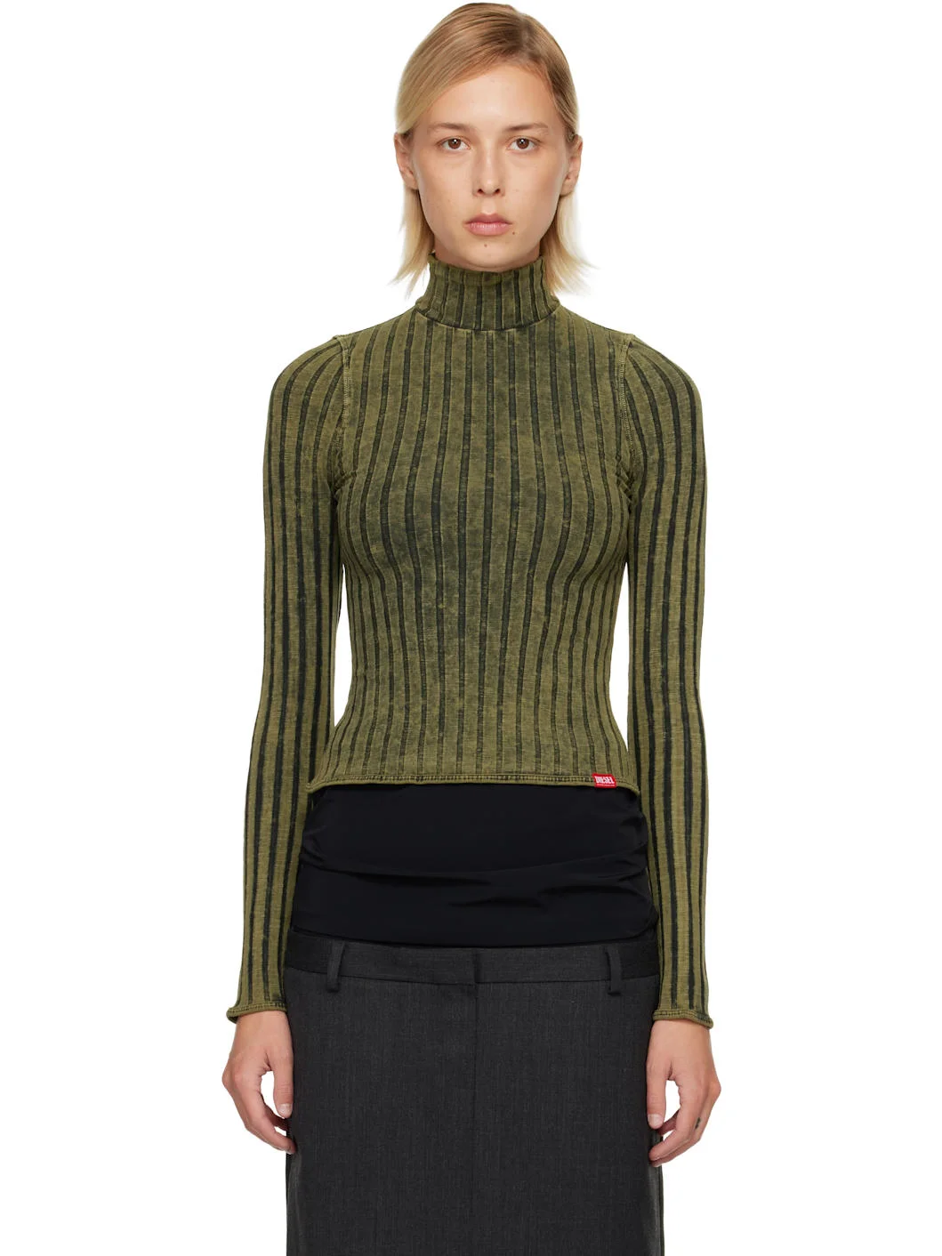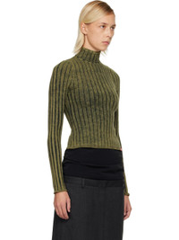 Rib-knit stretch cotton sweater. · Fading throughout · Mock neck · Logo flag at hem · Concealed zip closure at back collar Supplier color: Bottle green 95% cotton, 5% elastane. Made in Bulgaria 252001F099001