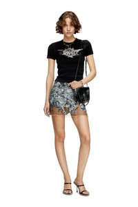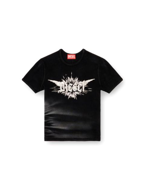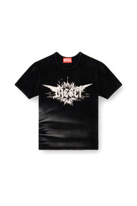 Product Description Made from flexible ribbed knit for a snug, body-contouring fit, this women’s T-shirt is embellished with a winged Diesel foil print on the chest. Enhanced with a stone-washed treatment and lasered whiskers for a worn-in indigo denim look. ID: A142310WFBM Size & Fit Model is wearing a size S and is 175 cm / 5'7'' Check the size chart to choose the correct size. Materials & Details Composition: 95%Cotton 5%Elastane-Spandex Slim fit