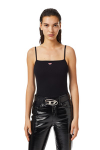 PRODUCT ID: A051070JEAI - 96%Cotton 4%Elastane-Spandex - Slim fit - Cropped style Model is wearing a size S and is 175 cm / 5'7'' Fits true to size, take your normal size. Ribbed stretch-cotton tank top with a body-hugging fit and cropped length. It features a small embroidered 'D' patch centred high on the chest.