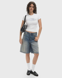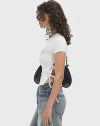 The Diesel T-laya top in a slim fit made from stretch jersey with organic cotton is embellished with delicate side bands. It's flocked and printed to create the muted logo graphic on the front and finished with a tonal embroidered oval D on the back. - Slim fit - Round neck - Ribbons on the sides Article Number: A19368-0HQAH-100 Gender: Women Color: BRIGHT WHITE Material: 95% Cotton, 5% Spandex/elastane