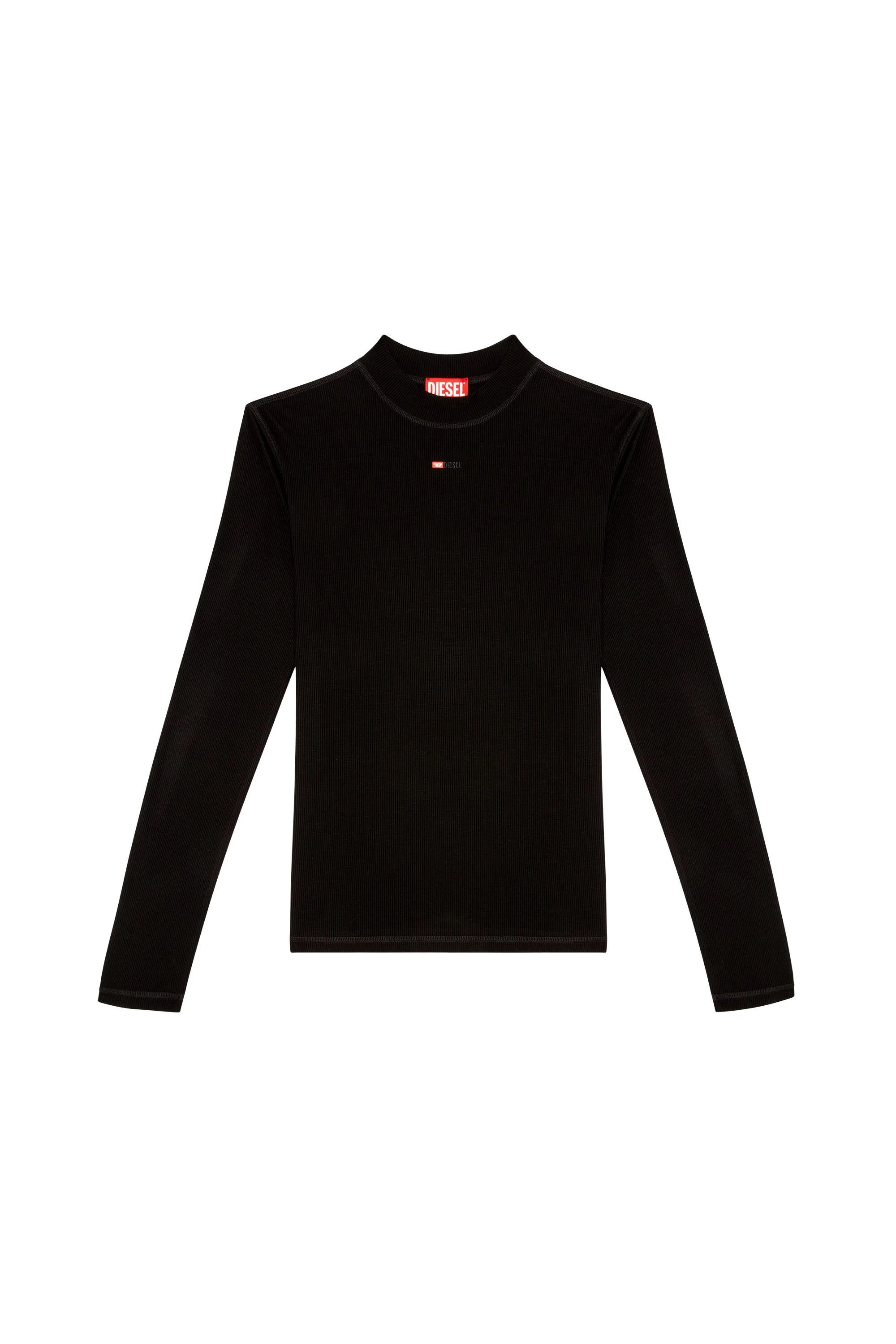 Product Description Designed for all genders, this long-sleeve top is embroidered with a micro version of the Denim Division 'D' logo right beneath the mock neck. It’s cut from ribbed jersey made using ECOVERO™ fibres mixed with stretch and has a close-fitting silhouette. ID: A149640BLAN Size & Fit Model is wearing a size L and is 182 cm / 5'10''. Model is wearing a size S and is 175 cm / 5'7''. UNISEX SIZES. FOR MAN: Fits true to size, take your normal size. FOR WOMAN: Oversize fit, woman that prefers regular fit may order one size down. Materials & Details Composition: 95%Viscose-Rayon 5%Elastane-Spandex Slim fit Mock neck Unisex