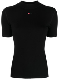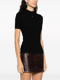 T-Mokky mock-neck T-shirt Highlights - Black - Fine ribbed - Embroidered logo - Mock neck - Short sleeves - Straight hem Imported Composition Viscose 95% SIZE & FIT Model measurements Height 5 ft 10 in(1.79 m) Bust/Chest 33.07 in(84 cm) Hips 35.82 in(91 cm) Waist 24.01 in(61 cm) Measurement BUST 29.13 in(74 cm) FittingInformation Designed for a close fit throughout Made from a midweight stretch fabric, this piece offers elasticity and flexibility when worn This piece fits true to size – take your usual size Washing instructions Hand Wash