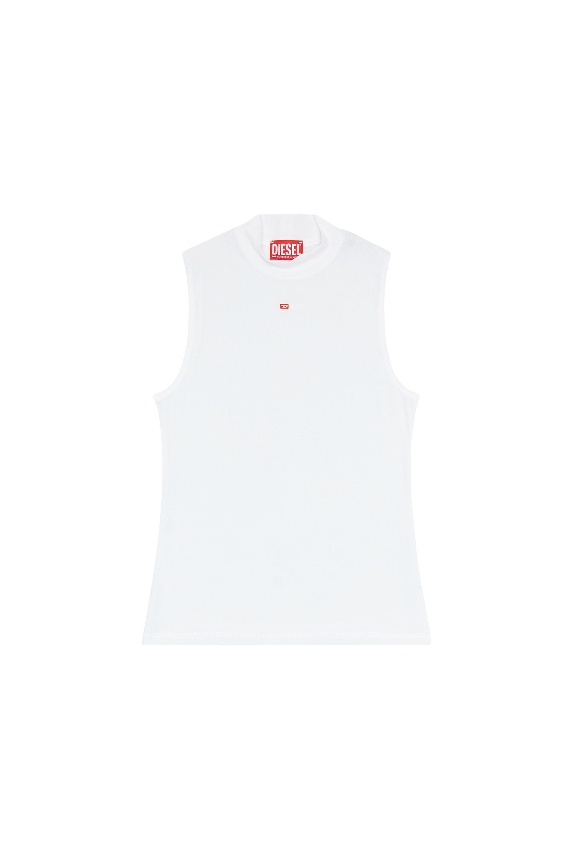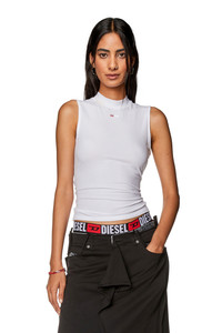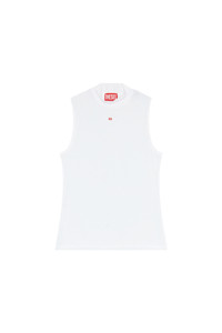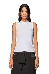 Model is wearing a size S and is 175 cm / 5'7'' Fits true to size, take your normal size. This women's tank top is cut from stretch rib jersey containing Ecovero viscose fibres. Its skinny-fit silhouette flaunts a mock neck and is embroidered with a micro D initial logo on the front.