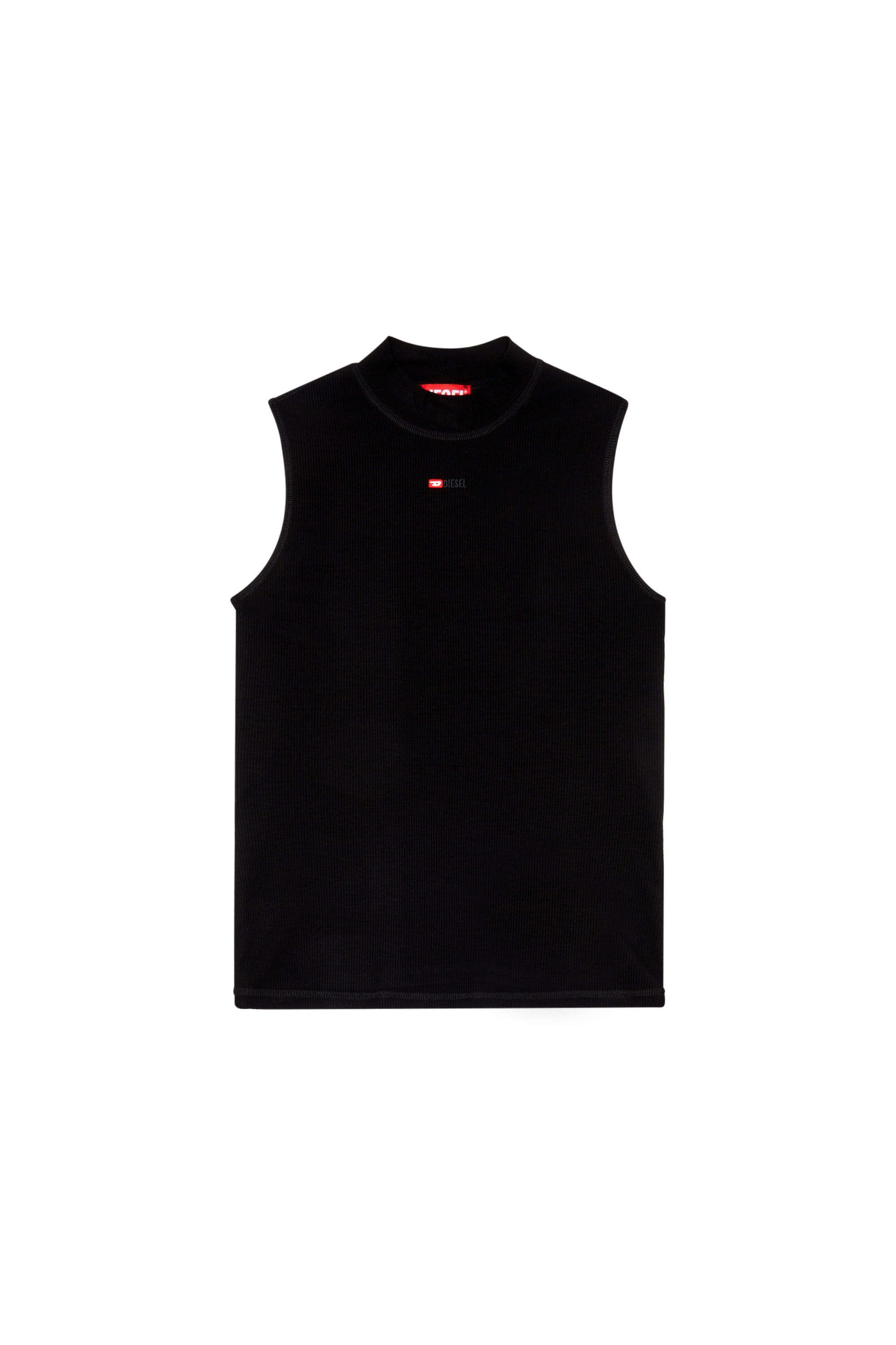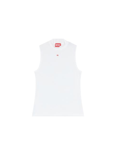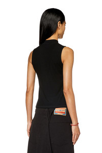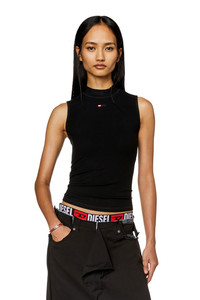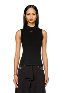 Model is wearing a size S and is 175 cm / 5'7'' Fits true to size, take your normal size. This women's tank top is cut from stretch rib jersey containing Ecovero viscose fibres. Its skinny-fit silhouette flaunts a mock neck and is embroidered with a micro D initial logo on the front.