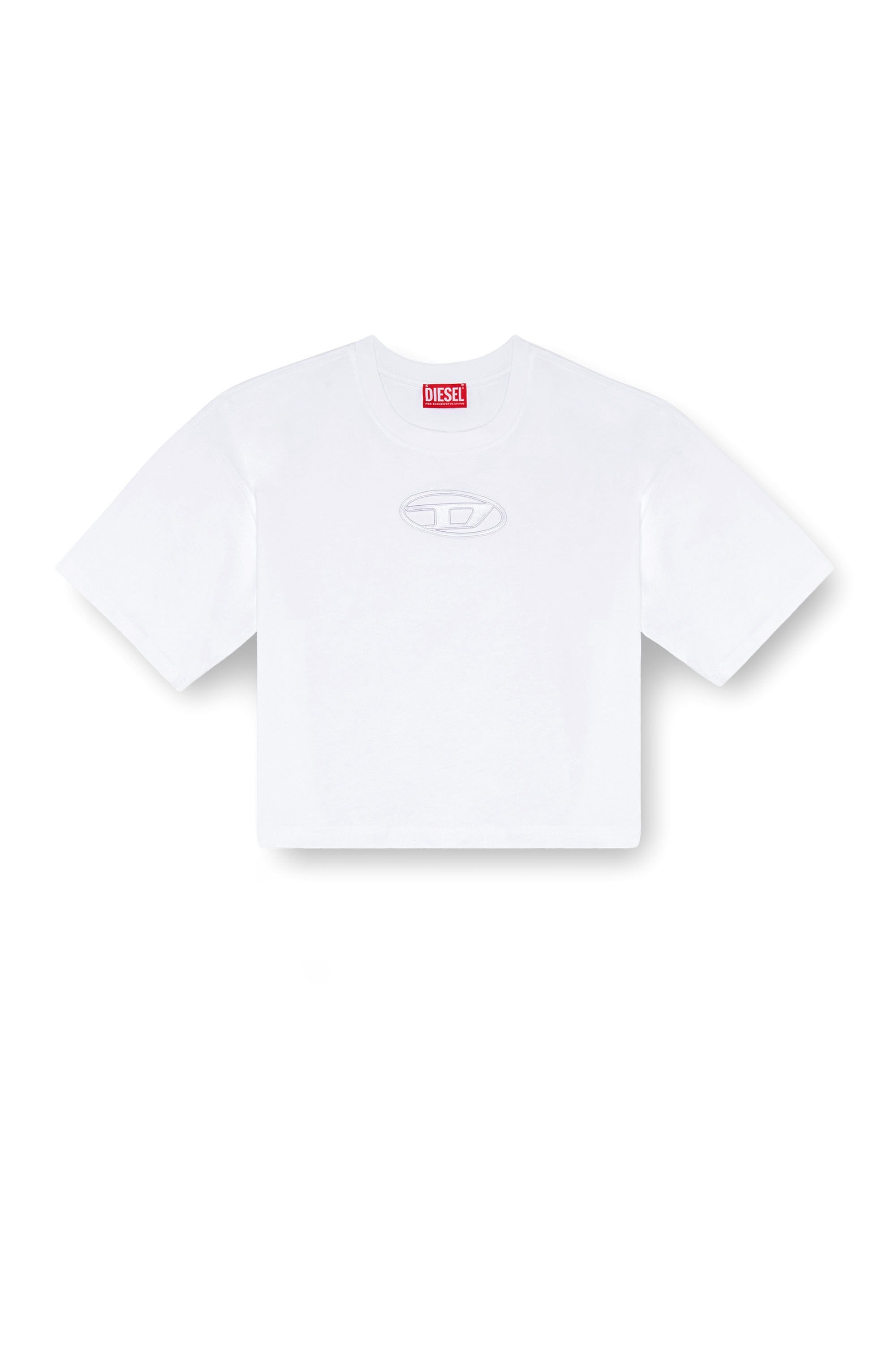 Product Description Women's oversized tee made from organic cotton. This style has a slightly boxy shape and a cool, peekaboo-effect logo – a laser-cut and embroidered Oval D patch reveals glimpses of skin at the chest. ID: A150960NIAX Size & Fit Model is wearing a size S and is 175 cm / 5'7'' Check the size chart to choose the correct size. Materials & Details Composition: 100%Cotton, Rib 95%Cotton 5%Elastane-Spandex, Embroidery Yarn 100%Polyester Loose, boxy fit