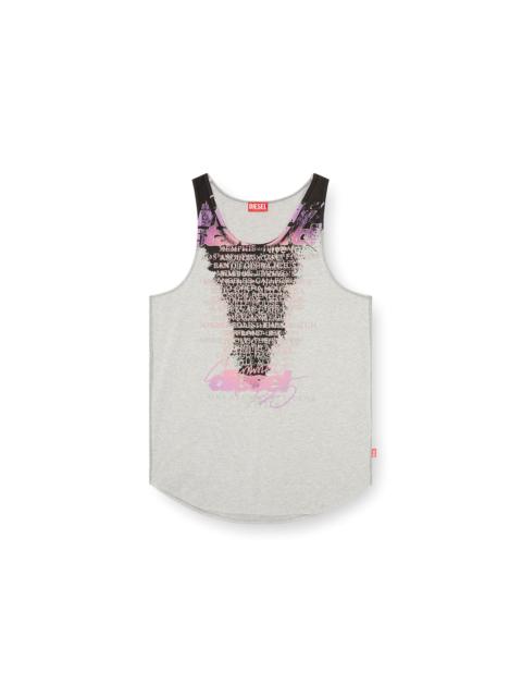 Product Description Men's organic cotton vest featuring a burnished, distressed effect. Part of the Remaster collection, a celebration of the underground club scene and Diesel's long-standing alliance with the DJ community. The grey iteration is embellished on the back with a phrase chosen by LSDXOXO: "A piece of music from the future, otherworldly, it encapsulates the feeling of an unforgettable night out. Like every great evening spent in club land, it has its peaks and valleys, a little glamour sprinkled throughout." ID: A197350PLBL Size & Fit Male model is wearing a size L and female model is wearing a size L. Check the size chart to choose the correct size. Materials & Details Composition: 100%Cotton Remaster capsule collection Racerback design Cover stitching