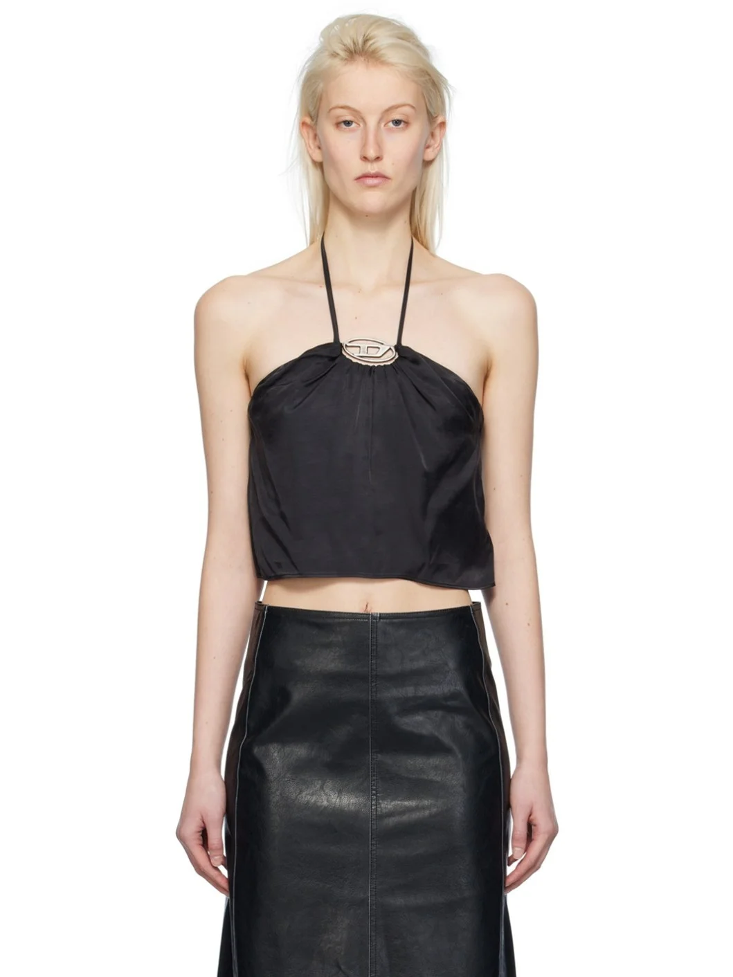 Cupro -and modal-blend satin tank top. Gathering throughout. · Logo hardware at front · Self-tie halter straps · Open back Supplier color: Dark grey 58% cupro, 42% modal. Made in Italy 241001F111023