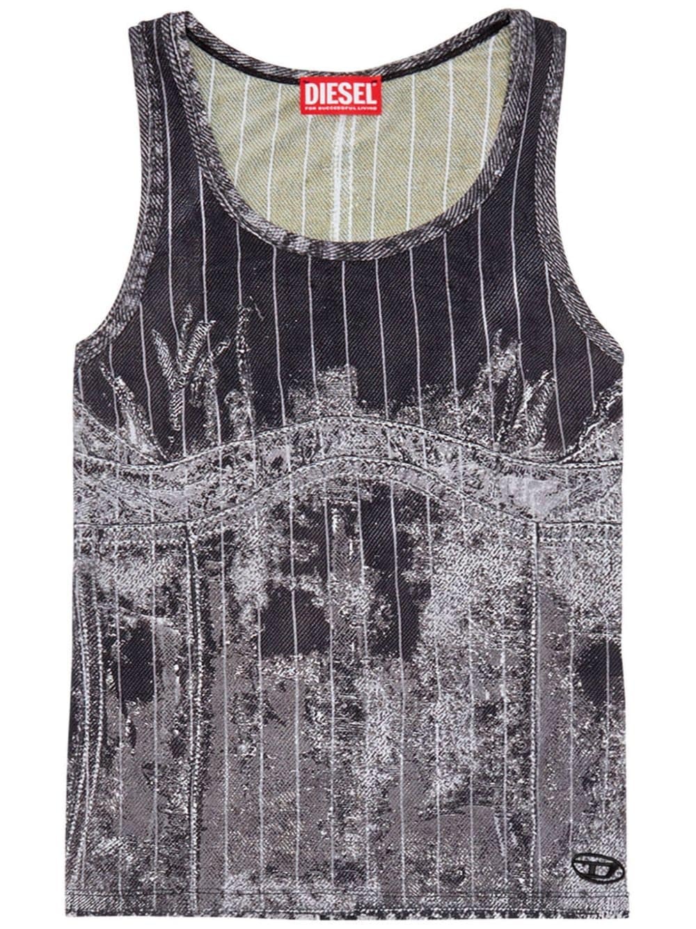 T-Stripe logo-embroidered tank top Highlights - Black/grey - Vertical stripe pattern - Embroidered logo to the side - Scoop neck - Sleeveless - Straight hem Imported Composition Polyamide 85%, Elastane 15%