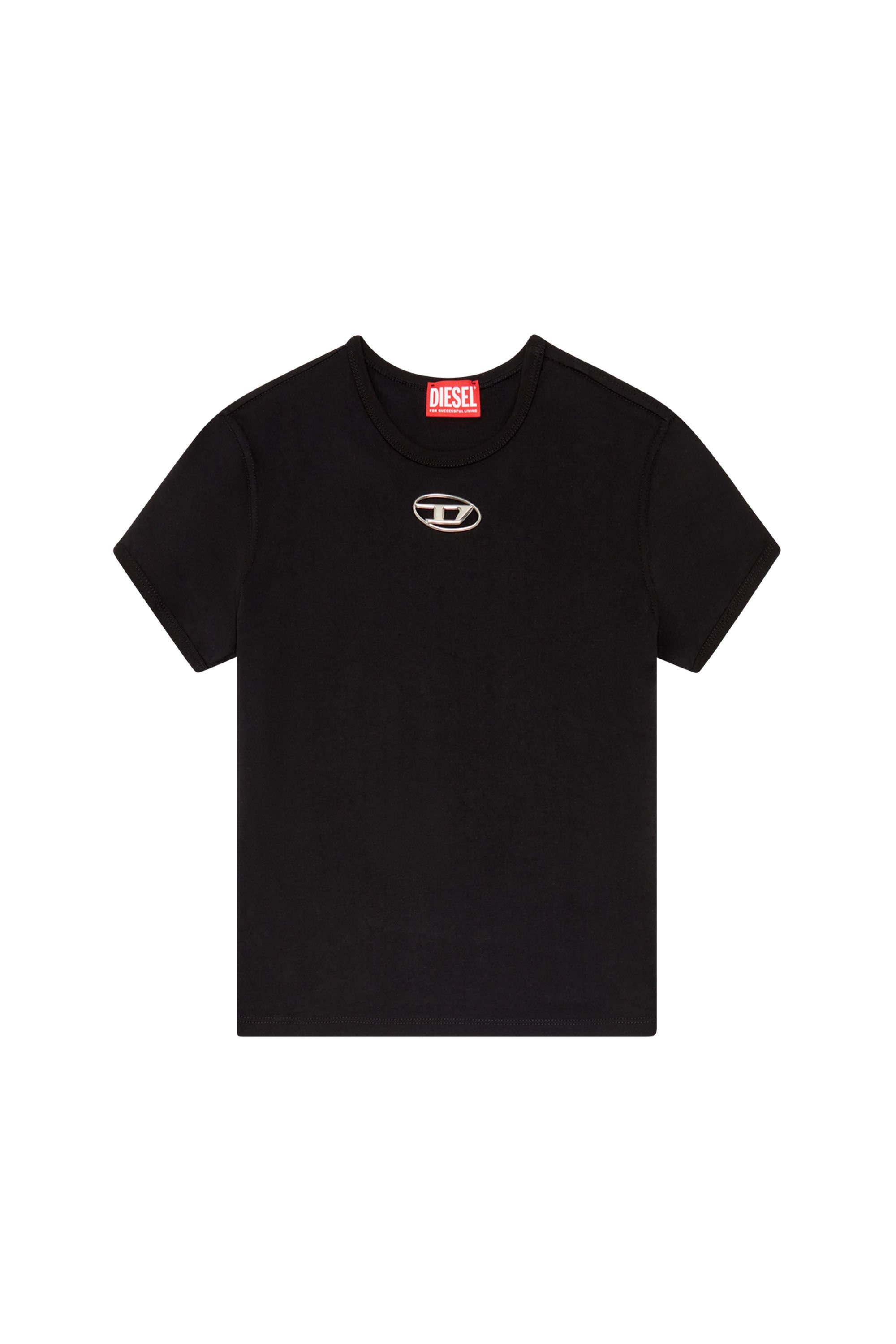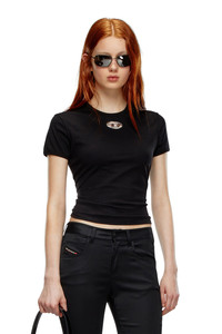 Product Description Styled in a slim fit, this women's tee is made from compact cotton jersey. The chest is encrusted with a small injection-moulded oval D for a peek-a-boo effect. ID: A154020HERS Size & Fit Model is wearing a size S and is 175 cm / 5'7'' Check the size chart to choose the correct size. Materials & Details Composition: 100%Cotton Slim fit
