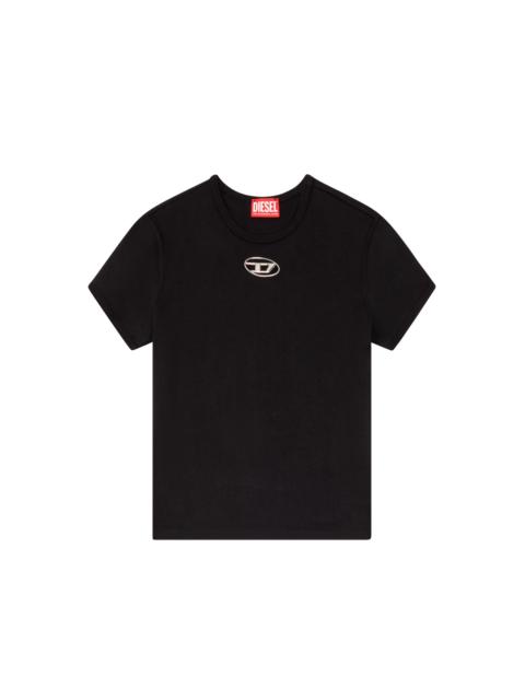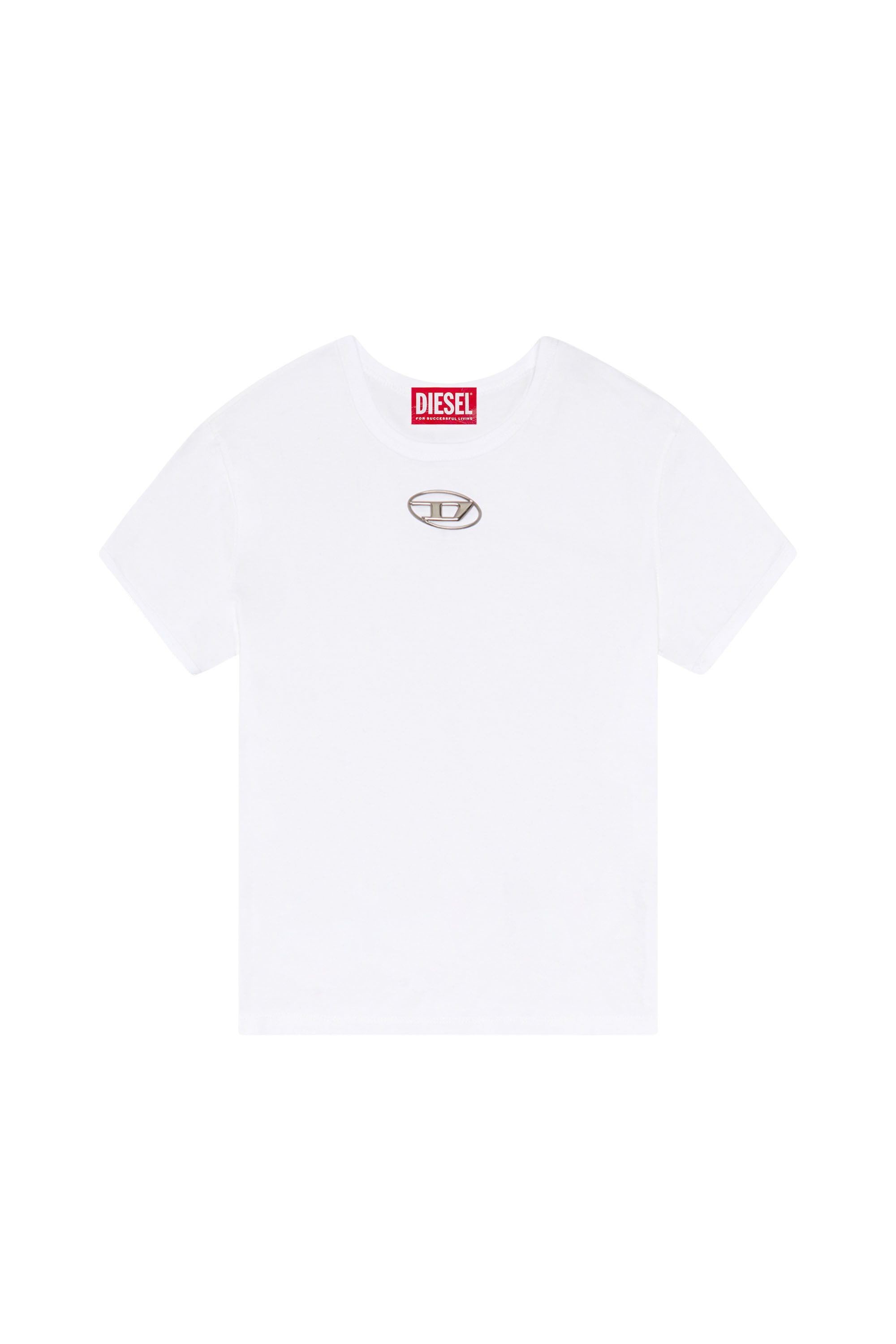 Product Description Styled in a slim fit, this women's tee is made from compact cotton jersey. The chest is encrusted with a small injection-moulded oval D for a peek-a-boo effect. ID: A154020HERS Size & Fit Model is wearing a size S and is 175 cm / 5'7'' Check the size chart to choose the correct size. Materials & Details Composition: 100%Cotton Slim fit