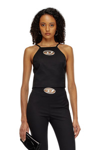 Product Description This women's strappy top is cut from black cool wool twill, spun with a hint of stretch for a close fit. Its backless design is secured with a single elasticated strap for a barely-there look. A metal Oval D plaque fills the chest cut-out. ID: A143870PHAL Size & Fit Model is wearing an IT size 40 and is 175 cm / 5'7'' Check the size chart to choose the correct size. Materials & Details Composition: 53%Polyester 43%Wool 4%Elastane-Spandex Slim fit Rear buckled strap Lined