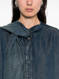 tie-neck denim maxi dress Highlights - Blue - Denim - Tie neck - Button front fastening - Curved hem Imported Composition Lyocell 100% SIZE & FIT Model measurements Height 5 ft 10 in(1.78 m) Bust/Chest 33.46 in(85 cm) Hips 36.22 in(92 cm) Waist 23.22 in(59 cm) Washing instructions Machine Wash