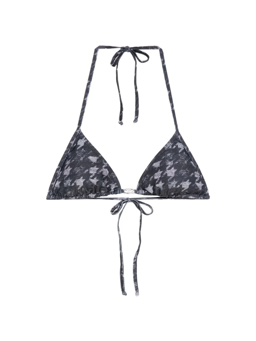 triangle houndstooth bikini top Highlights - Grey - Houndstooth pattern - Tie fastening - Triangle cups - Metallic detail - Be mindful to try on swimwear over your own garments. Imported Composition Polyester 82%, Elastane 18% Washing instructions Read Manufacturer Guidelines