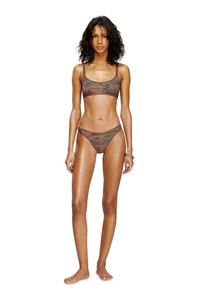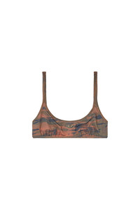 Product Description This women’s bikini top is made from recycled stretch fabric with a finely ribbed texture and utilitarian camouflage print. It has a sporty crop top shape and tiny peekaboo cut-outs created with the metallic Oval D logo on the front. ID: A175650KLAQ Size & Fit Model is wearing a size S and is 175 cm / 5'7'' Check the size chart to choose the correct size. Materials & Details Composition: 84%Polyester 16%Elastane-Spandex Non-adjustable straps Recycled stretch lining