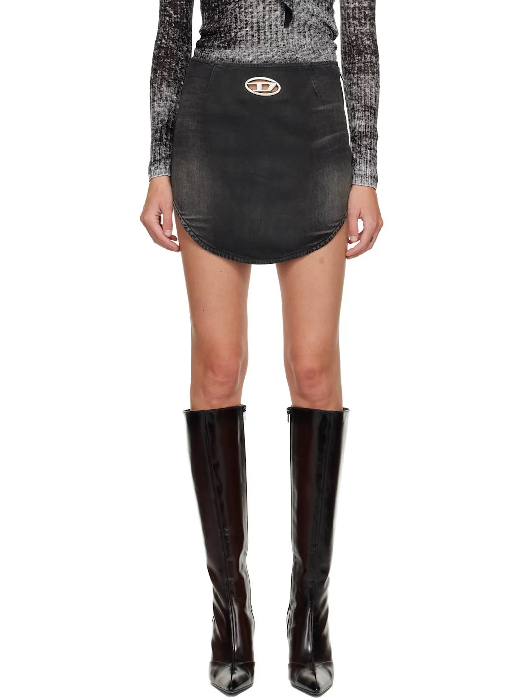 Rib-knit cotton and non-stretch denim miniskirt. · Stonewashed · Logo hardware and cutouts at front · Curved hem · Zip closure at side seam Supplier color: Black Body 1: 50% cotton, 40% lyocell, 10% modal. Body 2: 100% cotton. Made in Albania 252001F090000
