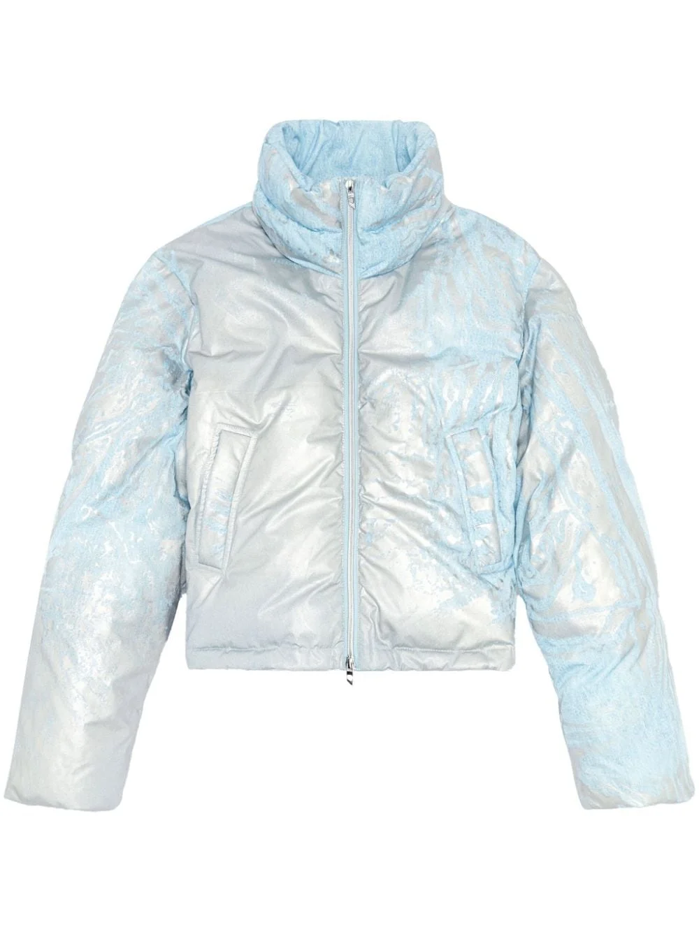 W-Himsy puffer jacket Highlights - Light blue/silver-tone - Faded effect - Padded design - High neck - Front zip fastening - Long sleeves - Two side welt pockets - Cropped - Straight hem Imported Composition Polyester 100% Washing instructions Read Manufacturer Guidelines